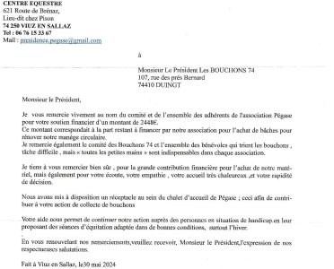Ce jeudi 11 juillet 2024, des membres de cette Association de LA ROCHE sur FORON nous ont livré des bouchons triés. La livraison a été (…)