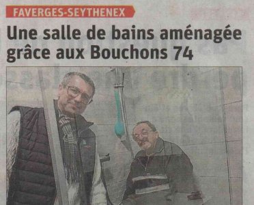 Article du Dauphiné Libéré en date du : 27/01/2023 ; FAVERGES-SEYTHENEX : Une salle de bains aménagée grâce aux Bouchons 74