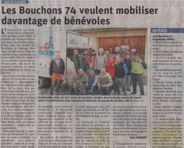 Article du Dauphiné Libéré en date du : 23/01/2023 ; HAUTE-SAVOIE : Les Bouchons 74 veulent mobiliser davantage de bénévoles