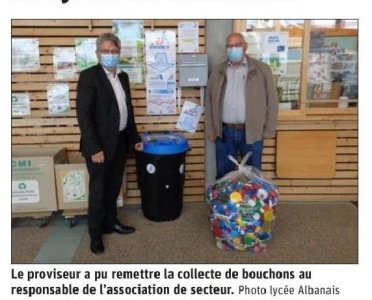 Article du Lycée de l’Albanias sur son site, en date du 07/05/2021 : Collecte des bouchons