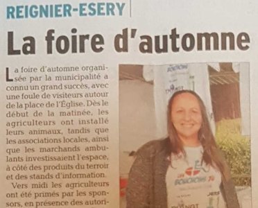 Article du Dauphiné Libéré en date du : 07/10/2018 ; foire d’automne à REIGNIER-ESERY