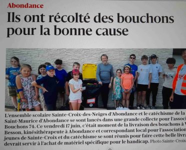 Article du Dauphiné Libéré en date du : 18/06/2023 ; Abondance ; Ils ont récolté des bouchons pour la bonne cause