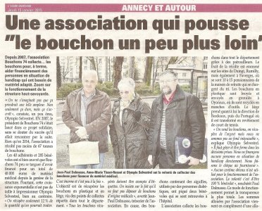 Article de l’Essor Savoyard du 15/01/2015 ; Une association qui pousse le bouchon un peu plus loin