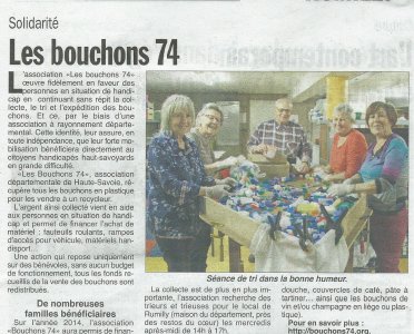 Article de l’hebdo des Savoie du 29/01/2015 ; RUMILLY ; Les Bouchons 74