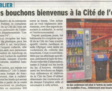Article du Dauphiné Libéré en date du : 24/01/2015 ; PUBLIER, Les bouchons bienvenus à la Cité de l’eau