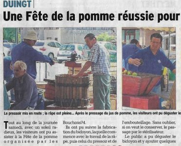 Article du Dauphiné Libéré en date du : 06/10/2014 : DUINGT, une fête de la pomme réussie pour les Bouchons 74
