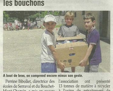 Article du Dauphiné Libéré de juillet 2014 ; VILLARDS-SUR-THÔNES, La belle collecte de bouchon des enfants de l’école publique