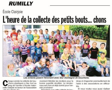 Article de l’hebdo des Savoie N° 811 du 03-07-2014 ; RUMILLY, École Clairjoie : L’heure de la collecte des petits bouts...chons