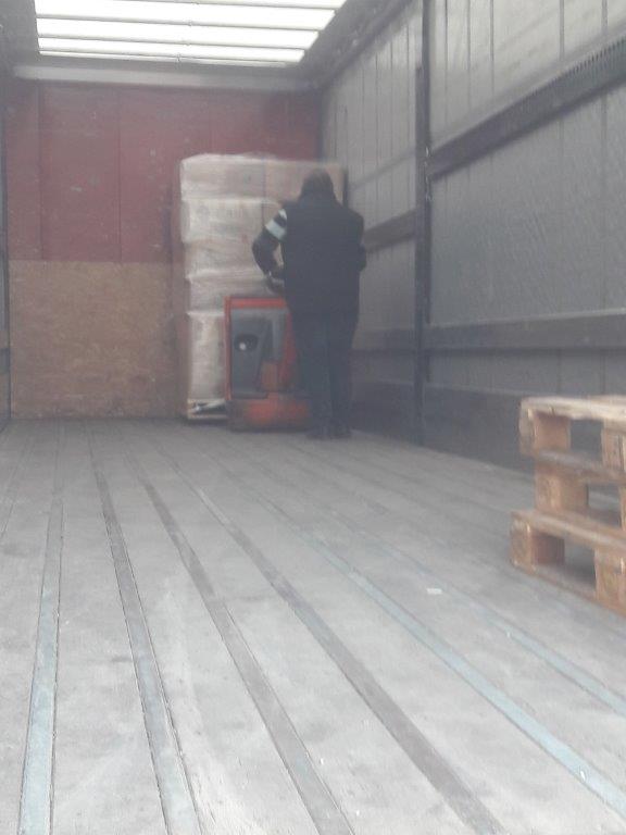 Les 12 palettes au sol de bouchons de liège sont bien parties en Gironde, chez notre recycleur spécialisé.