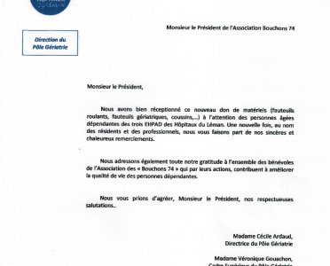 Dernièrement, nous avons offert des matériels à : l’EHPAD Les Verdannes, EVIAN LES BAINS l’EHPAD La Prairie, THONON LES BAINS l’EHPAD La Lumière (…)