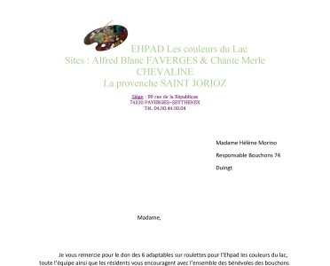 L’EHPAD les Couleurs du Lac de SAINT-JORIOZ nous remercie