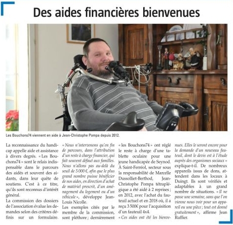 Article de l’ESSOR SAVOYARD en date du : 02/02/2023 ; BASSIN ANNECIEN : Des aides financières bienvenues