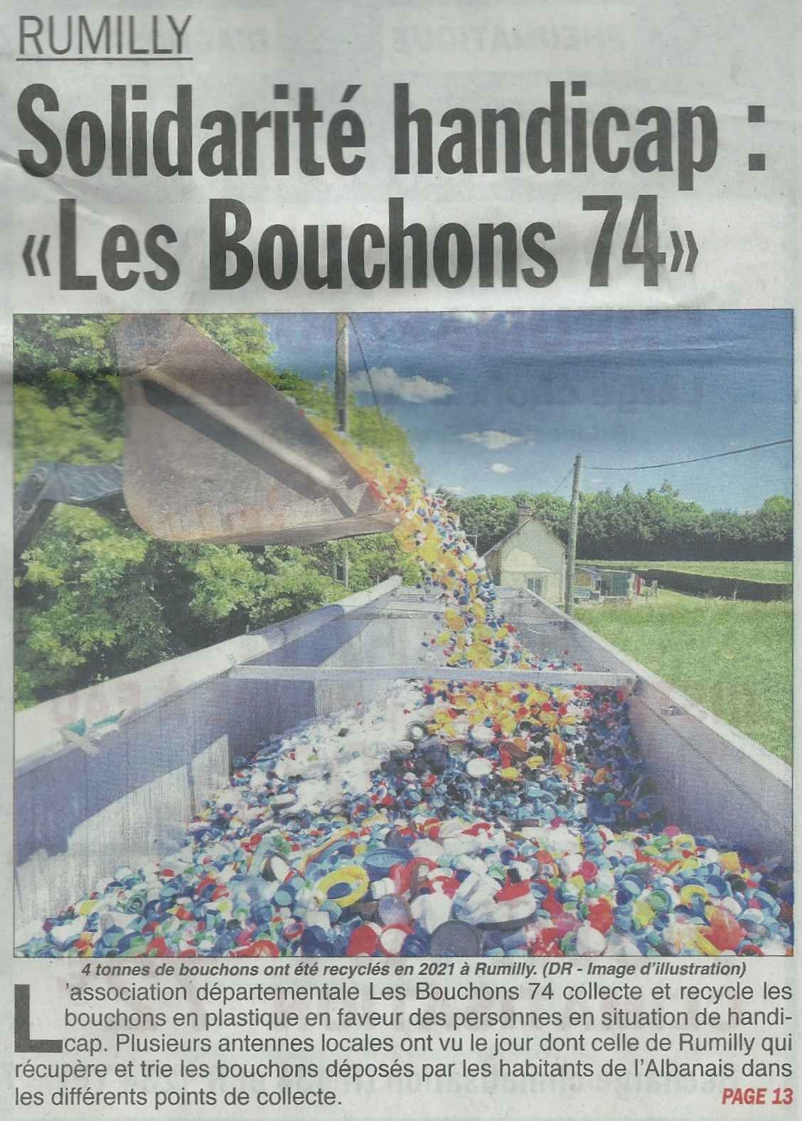 Article de L’Hebdo des Savoie du 16/06/2022 ; RUMILLY : Solidarité handicap : <<Les Bouchons 74 >>