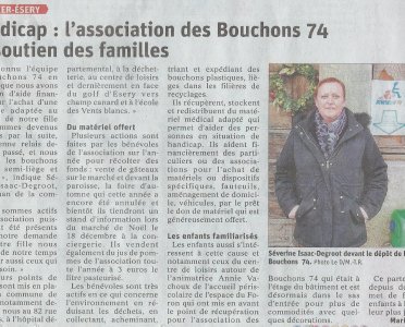 Cliquez sur l’article, pour l’agrandir. Nous tenons à remercier cette famille qui donne beaucoup de son temps pour les Bouchons 74 et à ses (…)