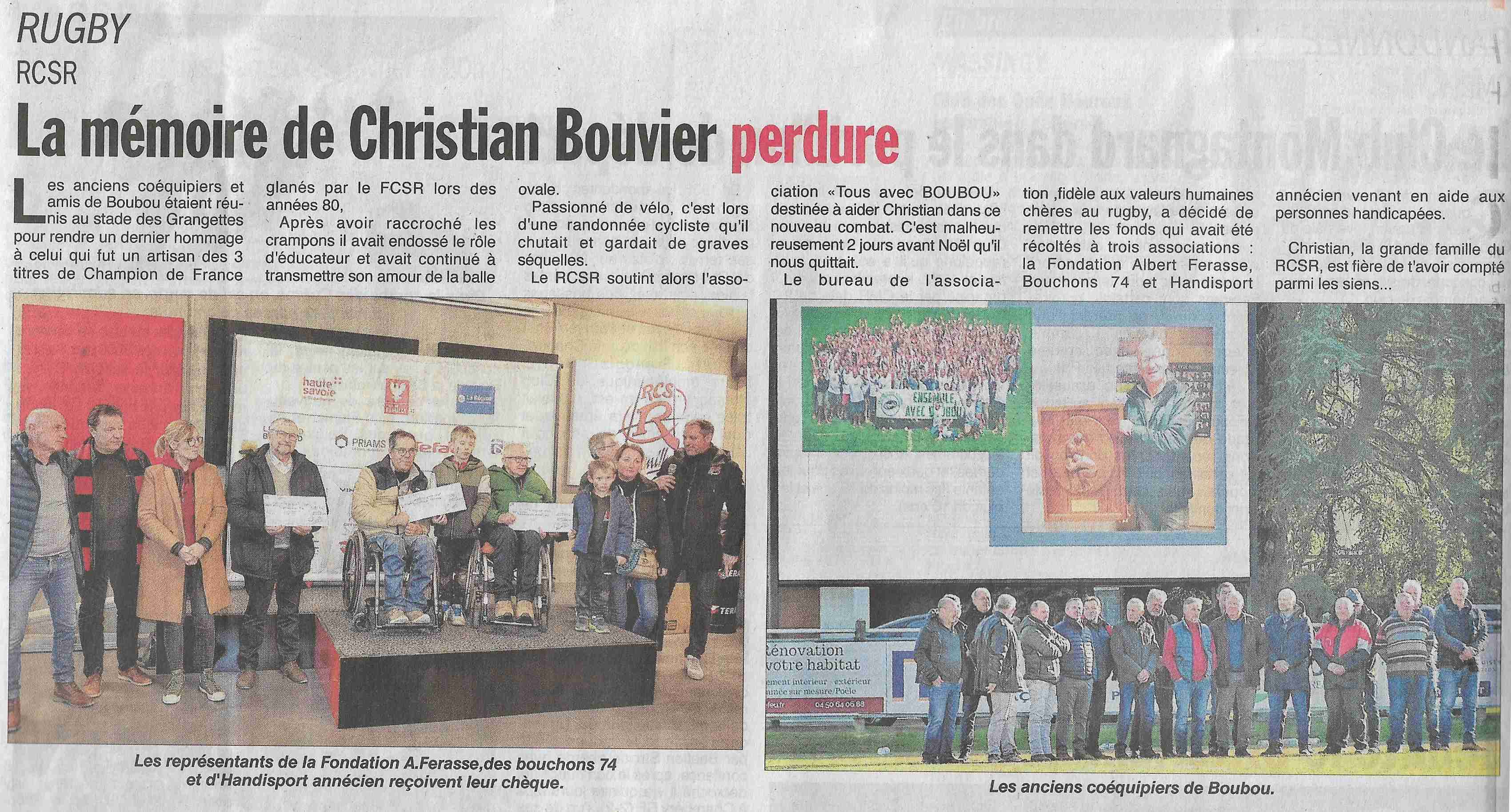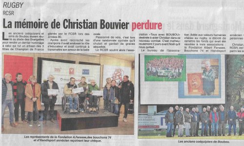 Article de l’Hebdo des Savoie en date du : 15/02/2023 ; RUMILLY : RUGBY RCSR La mémoire de Christian Bouvier perdure