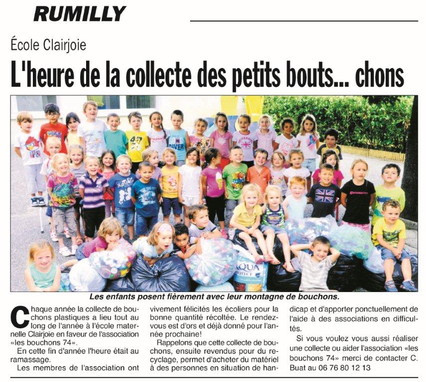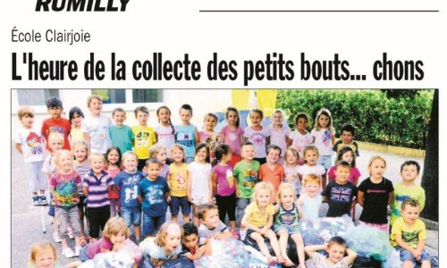 Les élèves de l’école Clairjoie de Rummilly ont collecté des bouchons pour notre association. Un grand merci à eux et aux enseignants.