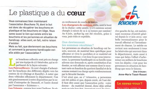 Article du Dauphiné Libéré en date du : 30/04/2016 ; DUINGT : Encore un camion rempli de 732 sacs pour les Bouchons 74