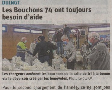 Article du Dauphiné Libéré en date du : 18/02/2021 ; DUINGT : Les Bouchons 74 ont toujours besoin d’aide