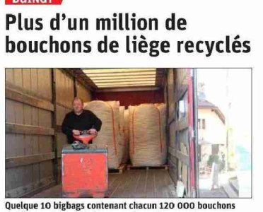 Article du Dauphiné Libéré en date du : 02/11/2021 ; DUINGT : Plus d’un million de bouchons de liège recyclés