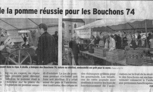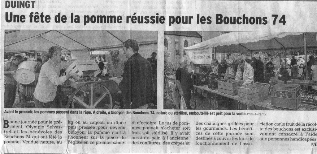 Article du Dauphiné Libéré en date du : 03/10/2016 ; DUINGT : Une fête de la pomme réussie pour les Bouchons 74