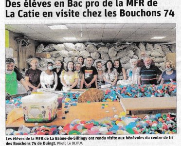 Article du Dauphiné Libéré en date du : 01/06/2021 ; DUINGT : D élèves en Bac Pro de la MFR de la Catie en visite chez les Bouchons 74