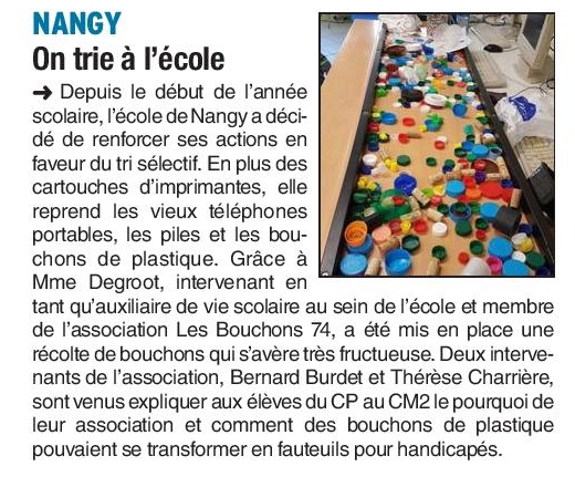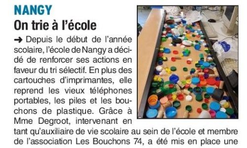 Article du Dauphiné Libéré en date du : 22/03/2017 ; NANGY : On trie à l’école