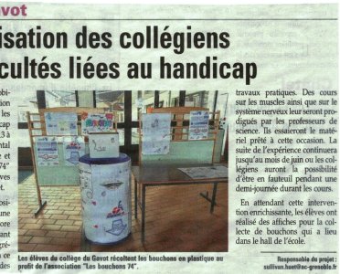 Article du Messager du 05-03-2015 ; Pays de Gavot : Sensibilisation des collégiens aux difficultés liées au handicap