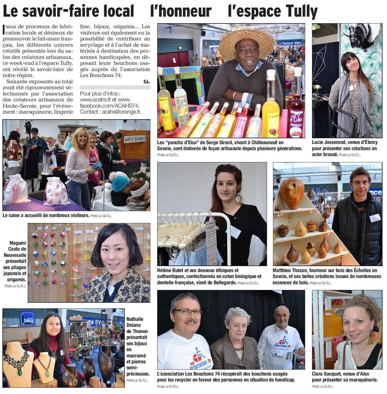 Article du Dauphiné Libéré en date du : 27/03/2017 ; THONON les BAINS espace TULLY Le savoir-faire local L’honneur
