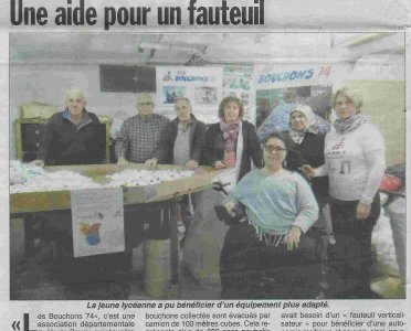 Article du Dauphiné Libéré en date du : 06/12/2018 ; Une aide pour un fauteuil