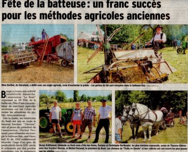 Article du Dauphiné Libéré en date du : 09/08/2017 ; Fête de la batteuse : un franc succès pour les méthodes agricoles anciennes