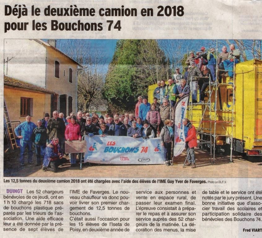 Article du Dauphiné Libéré en date du : 26/03/2018 ; chargement du camion 44-27 (2ème 2018)