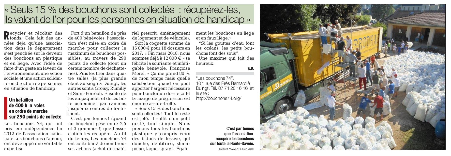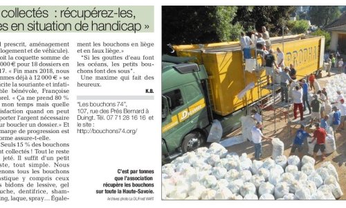 Article du Dauphiné Libéré en date du : 03/04/2018 ; seuls 15% des bouchons sont récoltés