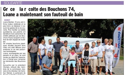 Article du Dauphiné Libéré en date du : 30/06/2018 ; Loane a maintenant son fauteuil de bain