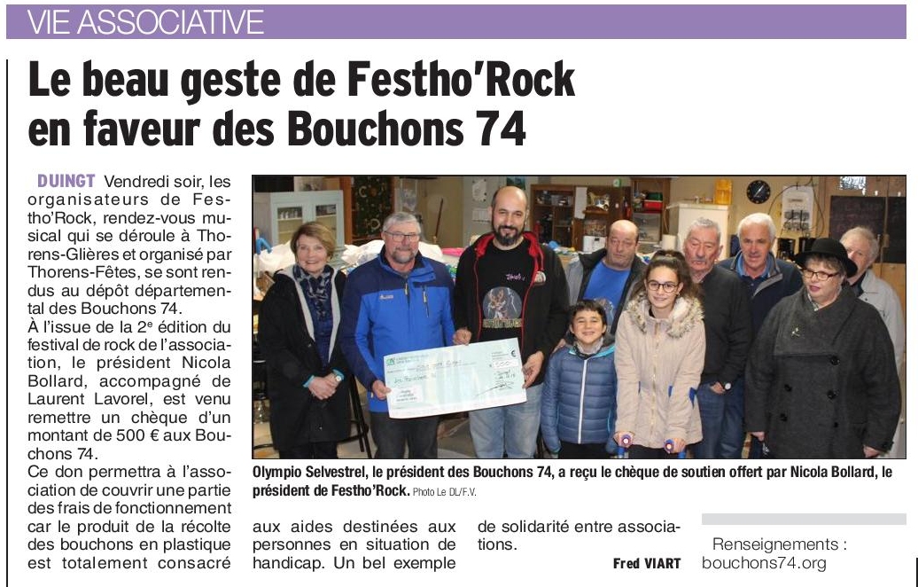 Article du Dauphiné Libéré en date du : 17/12/2018 ; le beau geste des Festho’ Rock