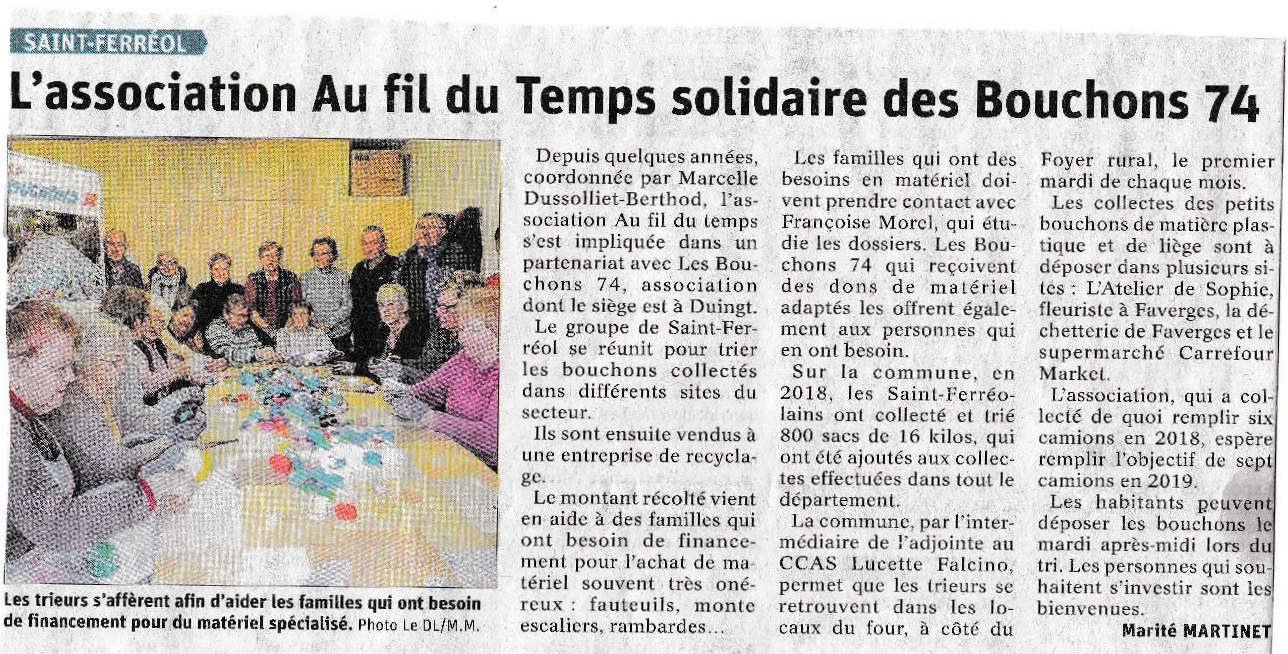 Article du Dauphiné Libéré en date du : 11/02/2019 ; Association au fil de temps de Saint FERRÉOL