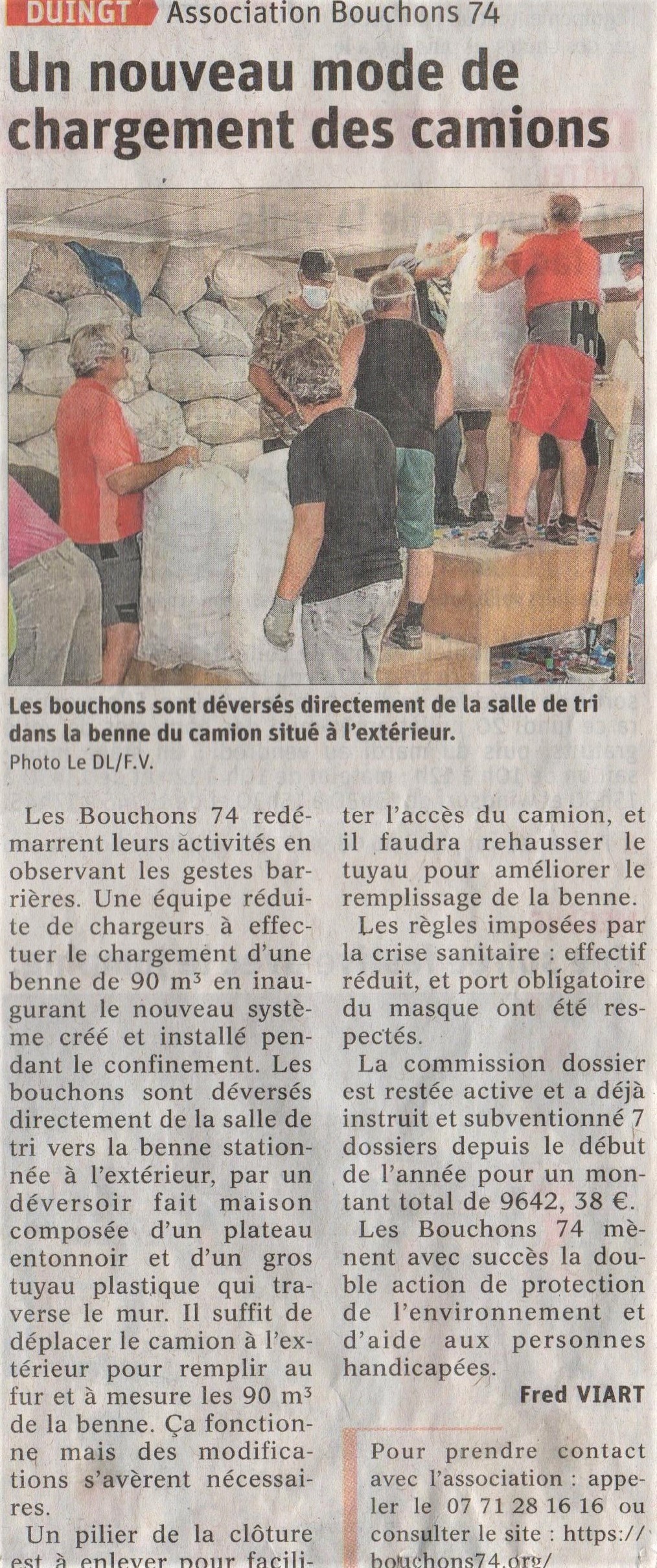 Article du Dauphiné Libéré en date du : 18/07/2020 ; DUINGT, Les Bouchons 74 ; Un nouveau mode de chargement des camions