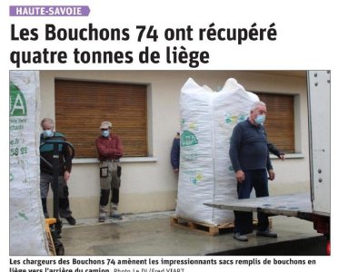 Article du Dauphiné Libéré en date du : 13/05/2021 ; DUINGT : Les Bouchons 74 ont récupéré qutre tonnes de liège