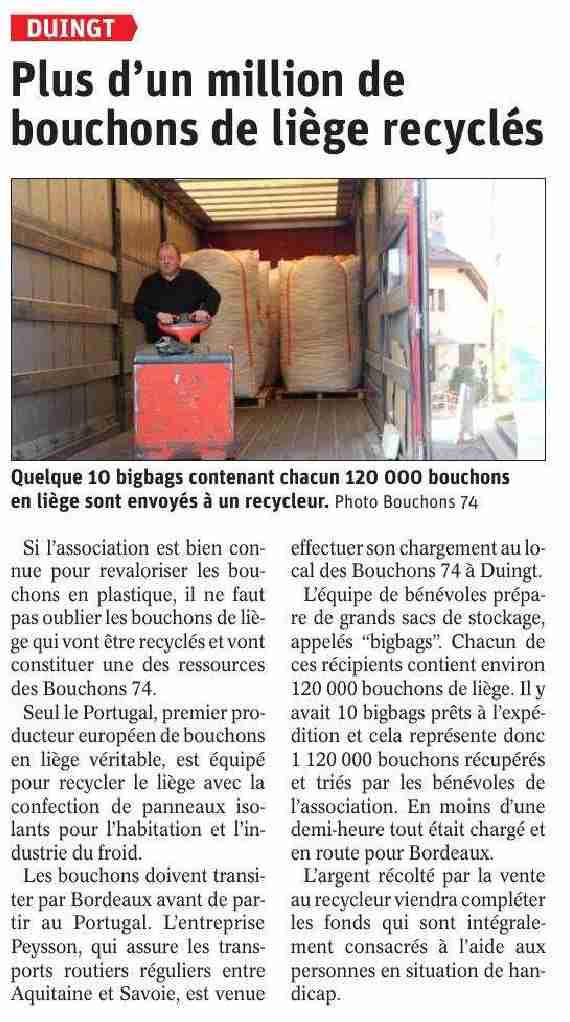 Article du Dauphiné Libéré en date du : 10/12/2021 ; REIGNIER-ÉSERY : Handicap : l’association des Bouchons 74 au soutien des familles