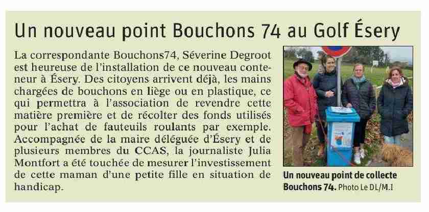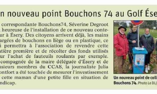 Article du Dauphiné Libéré en date du : 20/11/2021 ; Ésery : Un nouveau point de collecte au golf Ésery