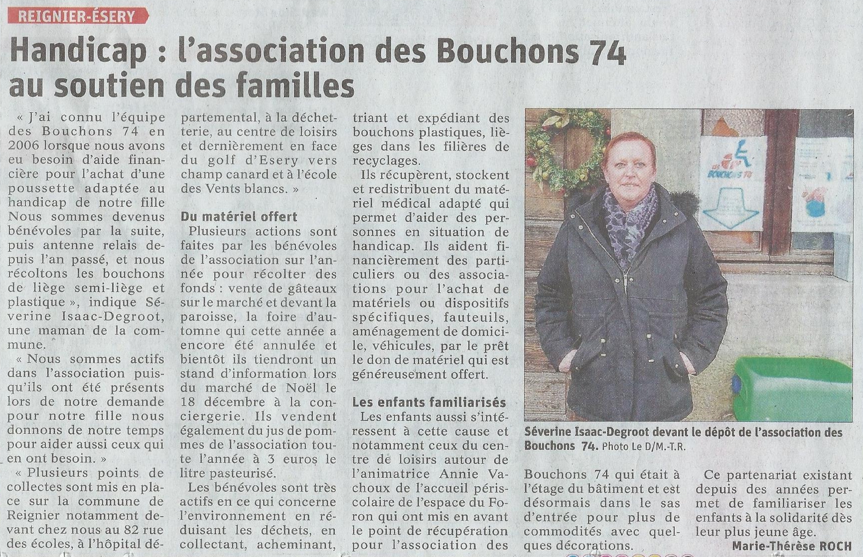 Article du Dauphiné Libéré en date du : 10/12/2021 ; REIGNIER-ÉSERY : Handicap : l’association des Bouchons 74 au soutien des familles