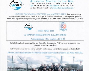 Le 03 mai 2018 : Solidarité et match de gala de foot à Saint JORIOZ