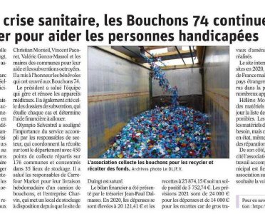 Article du Dauphiné Libéré en date du : 24/03/2021 ; Haute-Savoie : Malgré la crise sanitaire, les Bouchons 74 continuent de recycler pour aider les personnes handicapées