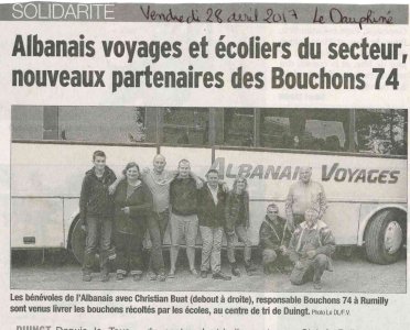 Article du Dauphiné Libéré en date du : 28/04/2017 : Albanais Voyages et écoliers du secteur, nouveaux partenaires des Bouchons 74