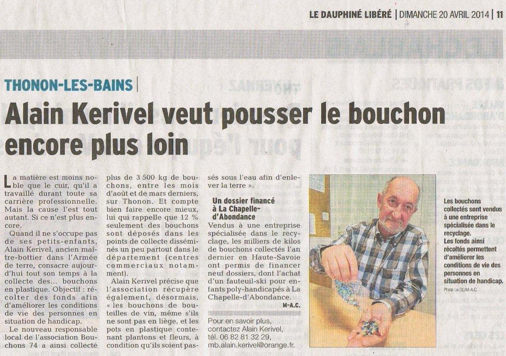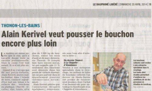 Article du Dauphiné Libéré en date du : 20/04/2014 ; THONON-LES-BAINS, Alain KÉRIVEL veut pousser le bouchon encore plus loin
