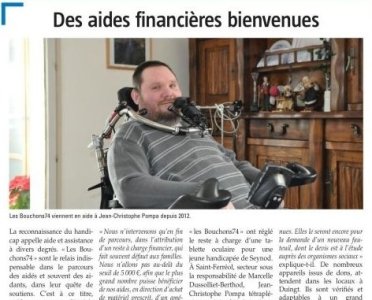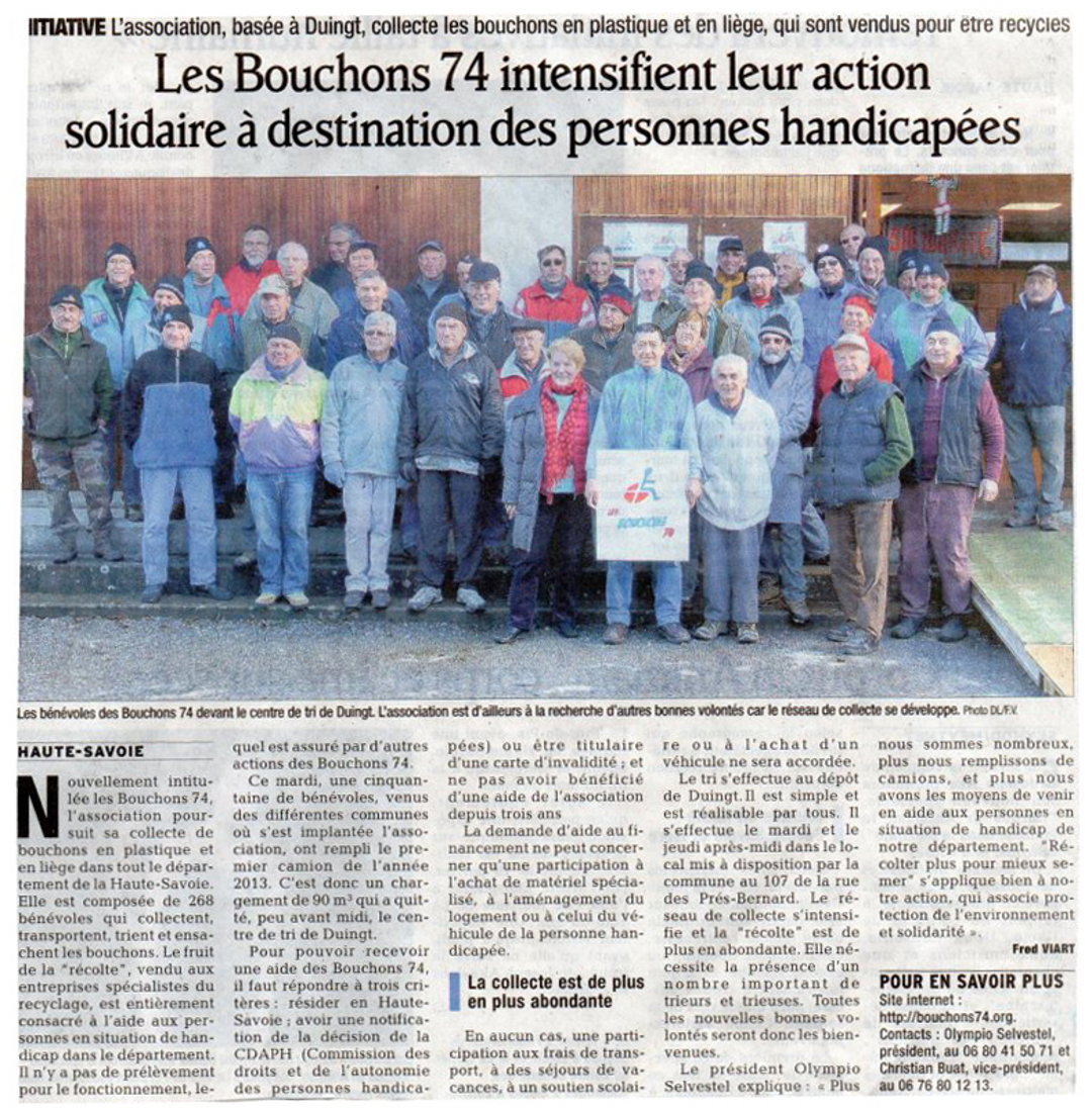 Article du Dauphiné Libéré en date du : 29 janvier 2013 ; Les Bouchons 74 intensifient leur action solidaire à destination des personnes handicapées