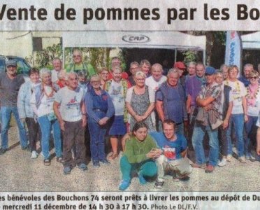 Article du Dauphiné Libéré en date du : 09/12/2019 ; DUINGT, vente de pommes par les Bouchons 74