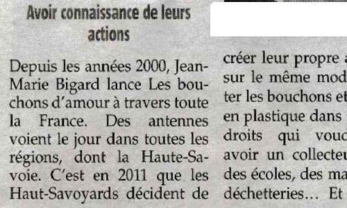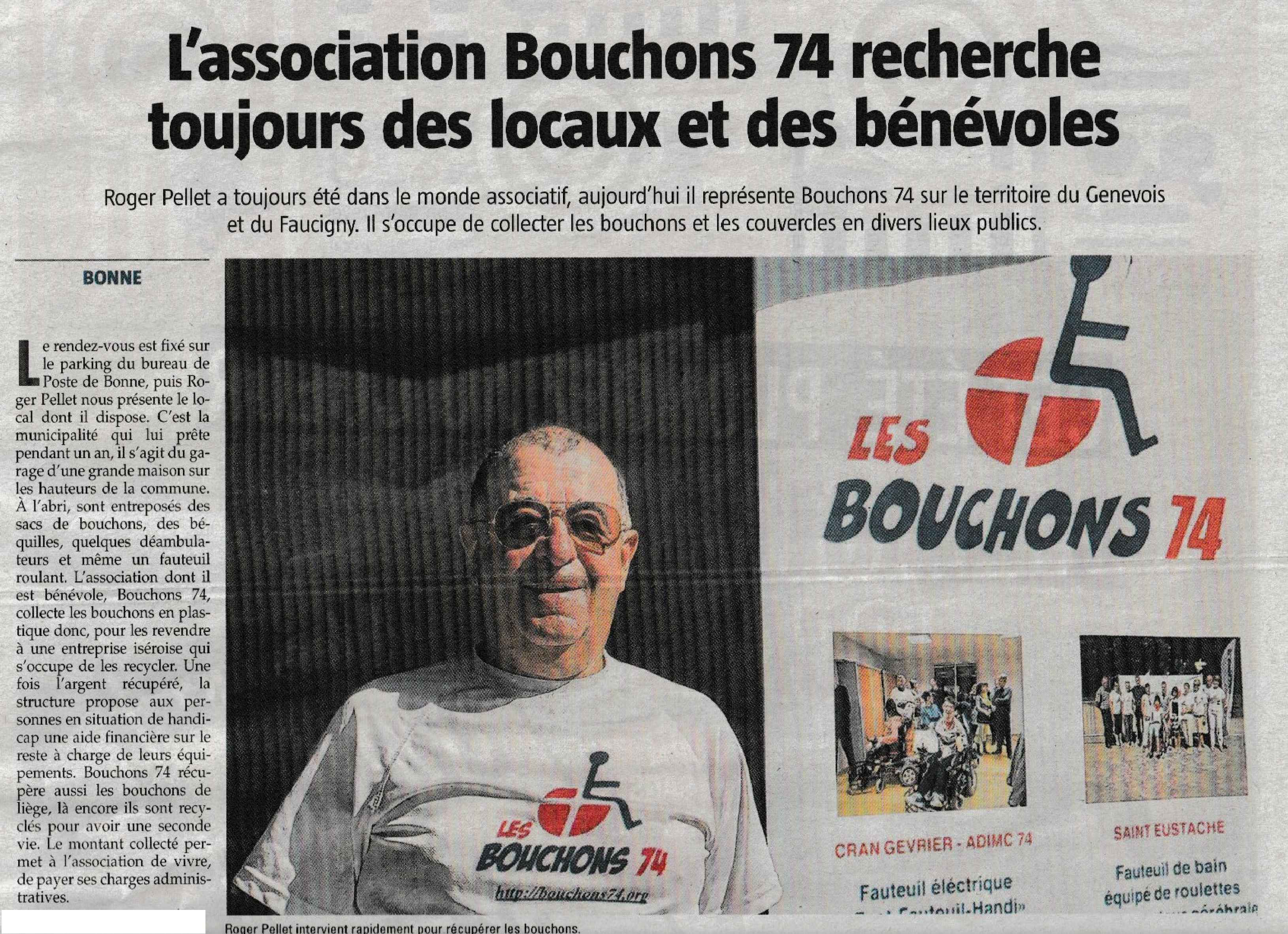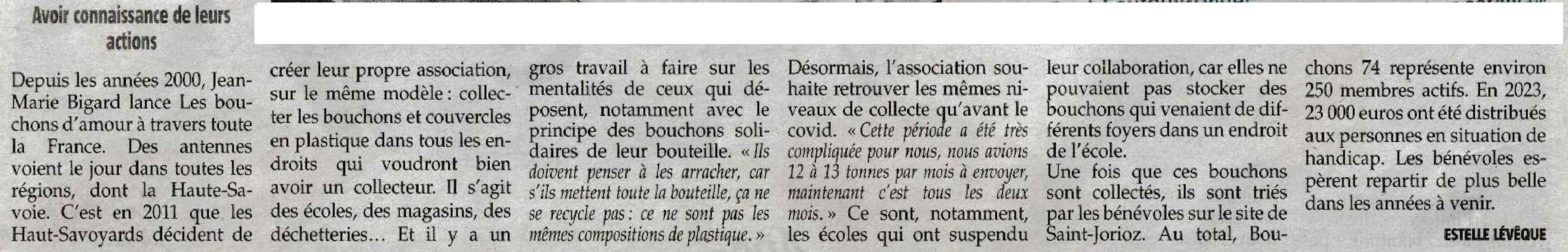 Article Le Messager en date du : 27/06/2024 ; Genevois ; L’association Bouchons74 recherche toujours des locaux et des bénévoles
