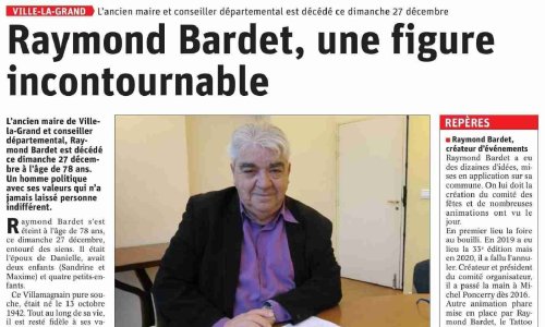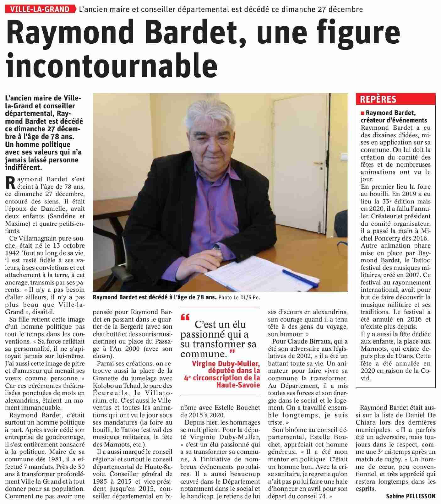 Article du Dauphiné Libéré en date du : 28/12/2020 ; VILLE-LA-GRAND : Raymond BARDET, une figure incontournable