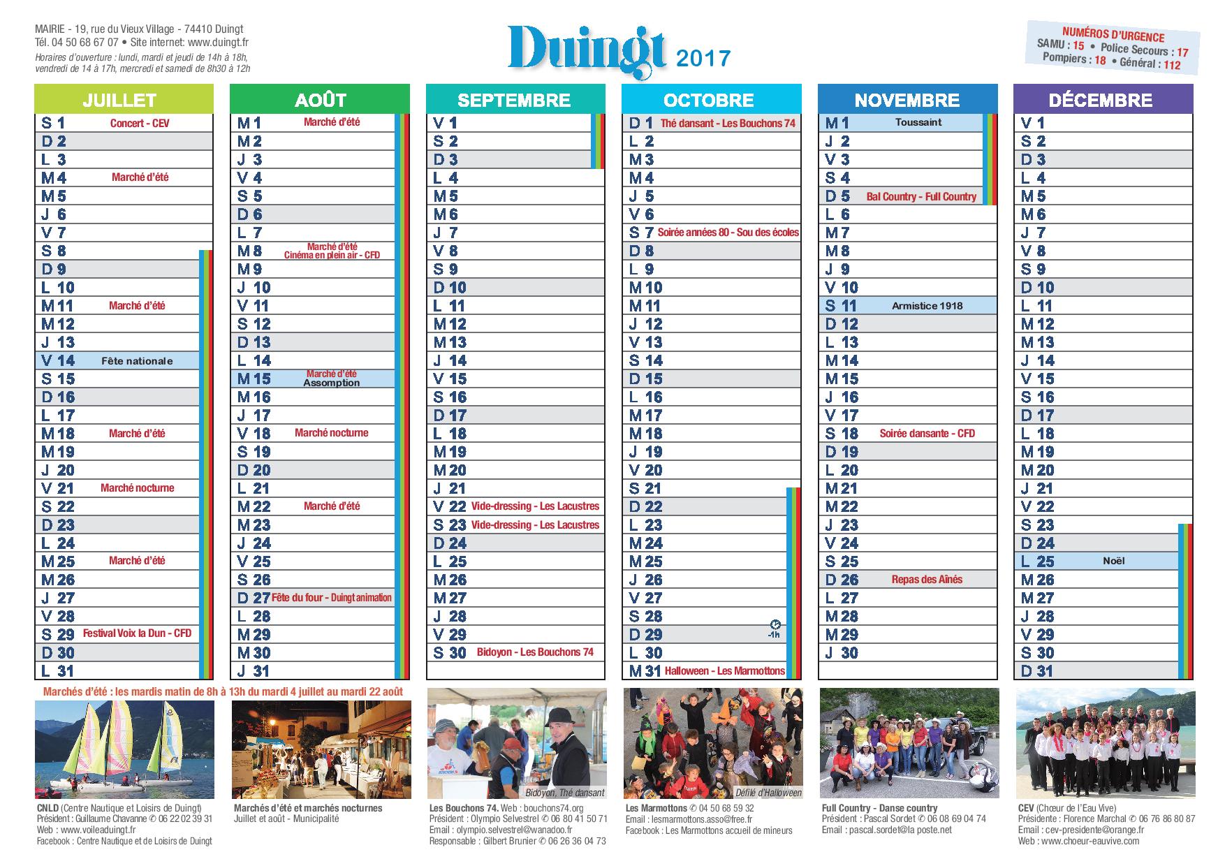 Ci-joint le calendrier DUINGT 2017 avec les dates des animations 2017 sur la commune.