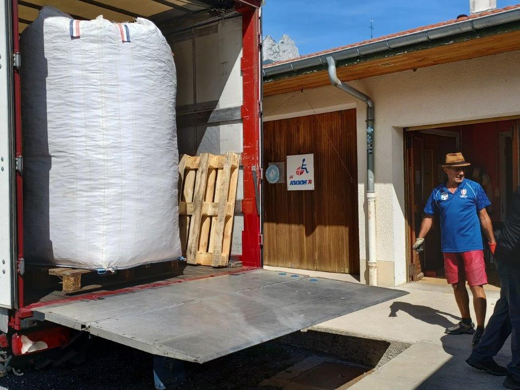 Ainsi, ce sont près de 4 200 kg de bouchons en liège soit 10 "BIG BAG" que Daniel MIEGE, Jean RUFFIER et Olympio SELVESTREL ont chargés dans le camion de la Sté PEYSSON de la Motte-Servolex.